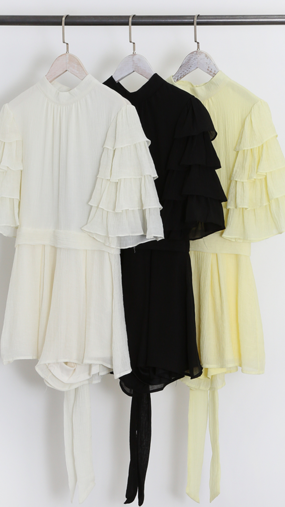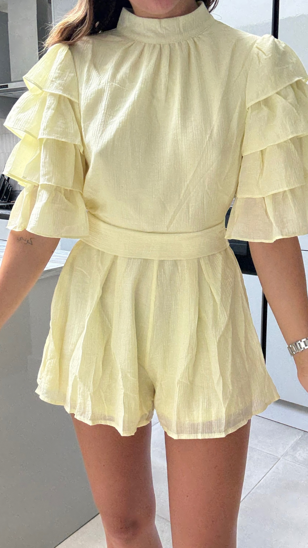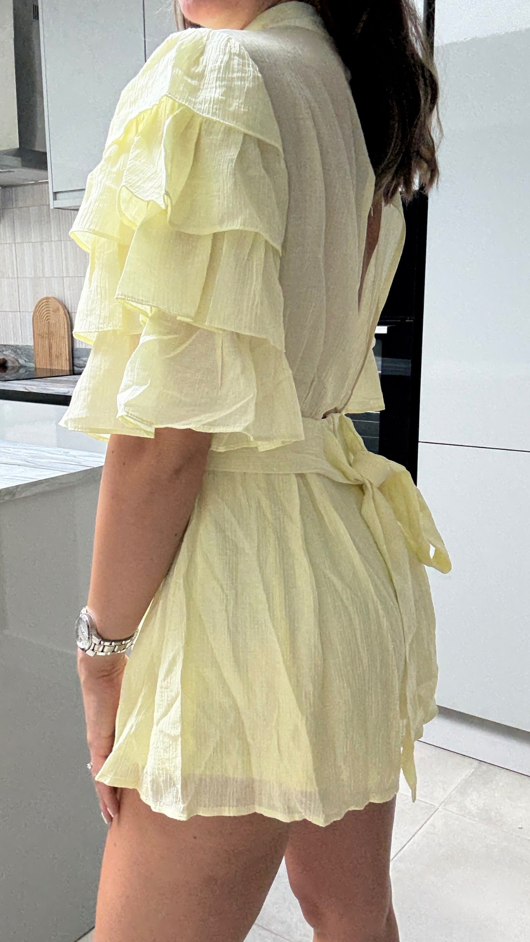 Lemon Frill Sleeve Chiffon Cut Out Back Playsuit