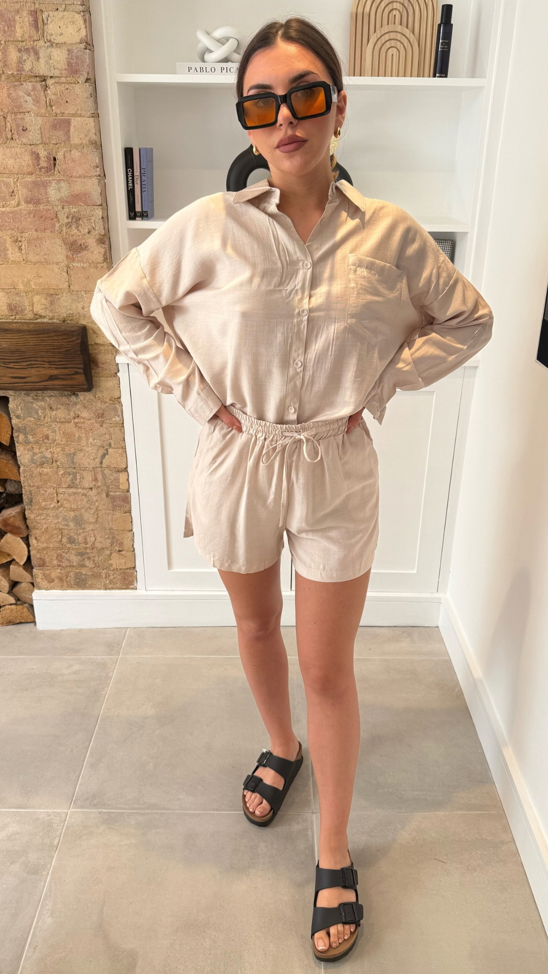 Effortless style, elevated comfort. This Lightweight Shirt & Shorts Co-ord Set is your go-to for sun-soaked days and laid-back luxury. Crafted from breathable, easy-flowing fabric, the set features a relaxed button-up shirt with a flattering drape, paired with matching high-waisted shorts for a polished yet carefree look.