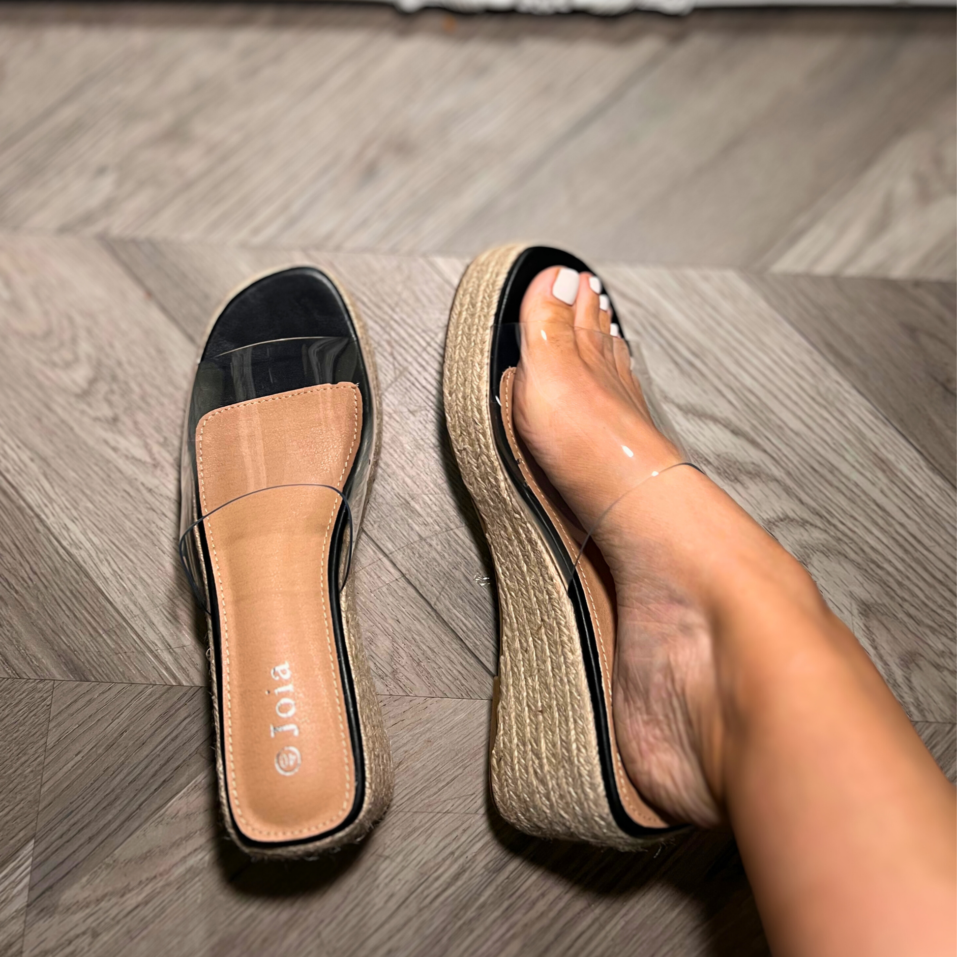 Order your Hazel Clear Strap Espadrille Wedge Slide Sandals today and step into the summer with style! 🛍️